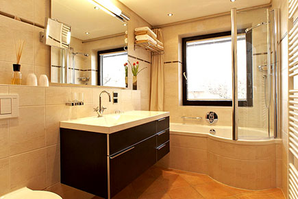 Bad mit WC und kombinierter Dusch / Badewanne. Diele. Zentralheizung.